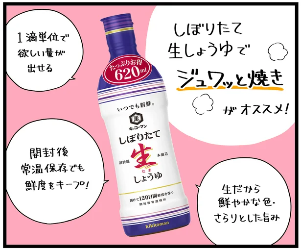 そのままかけたり、調理に使ったりとっても便利な生しょうゆ。