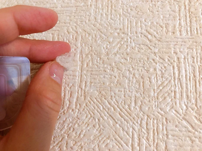試しにフックを剥がしてみようと思い、グッと力を入れるとフックだけが先に剥がれました。接着剤はあとから指でラク~に剥がすことができて、本当に跡が残りませんでしたよ!