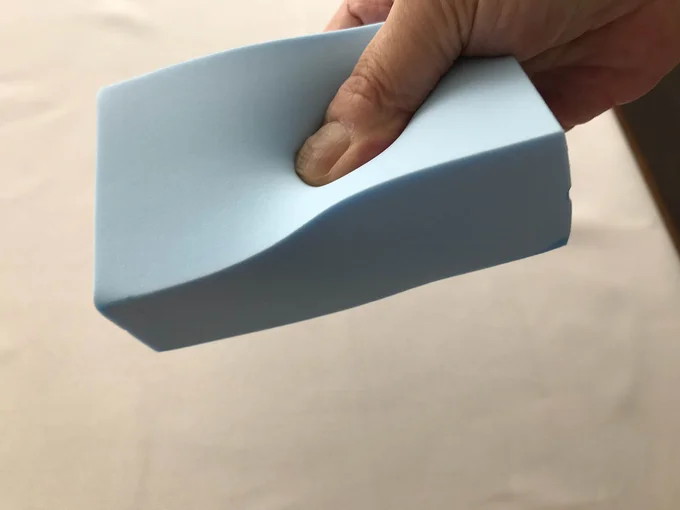 色はブルーですが、スポンジといいつつも見た目に軽やかさはまったくなく、見るからに身がしっかり詰まった〝生麩(なまふ)〟のような状態(失礼!)。